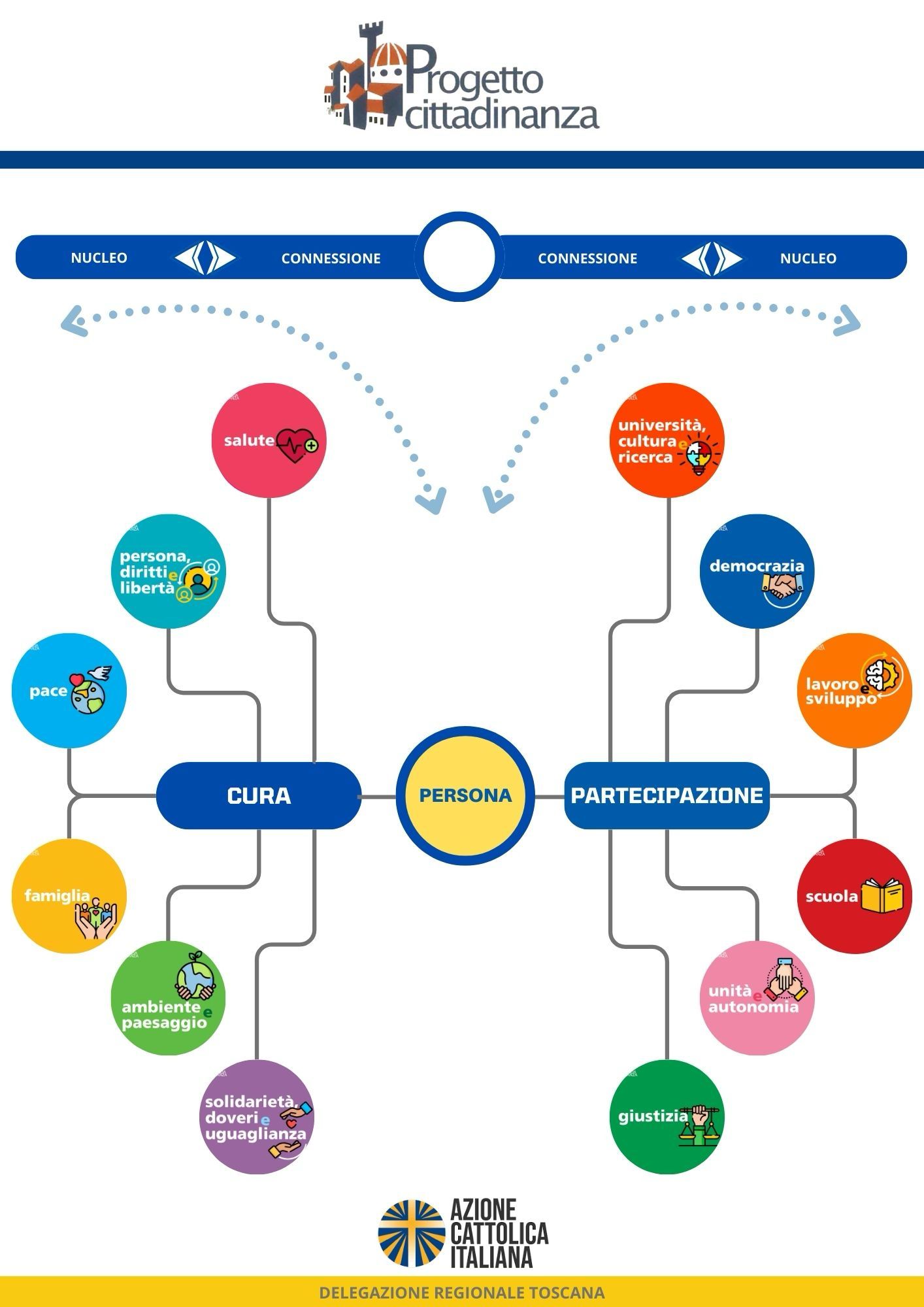 Cura e Partecipazione: sono due connessioni che legano fra loro alcune “parole di giustizia e speranza” intorno alle quali costruire il Progetto Cittadinanza nella versione 3.0: un progetto diffuso nel tempo e nello spazio. Le chiavi di lettura della Cura e della Partecipazione ci permette così di rilanciare alcune scelte dell’Azione Cattolica indicate nel Documento della XVIII Assemblea nazionale (2024):